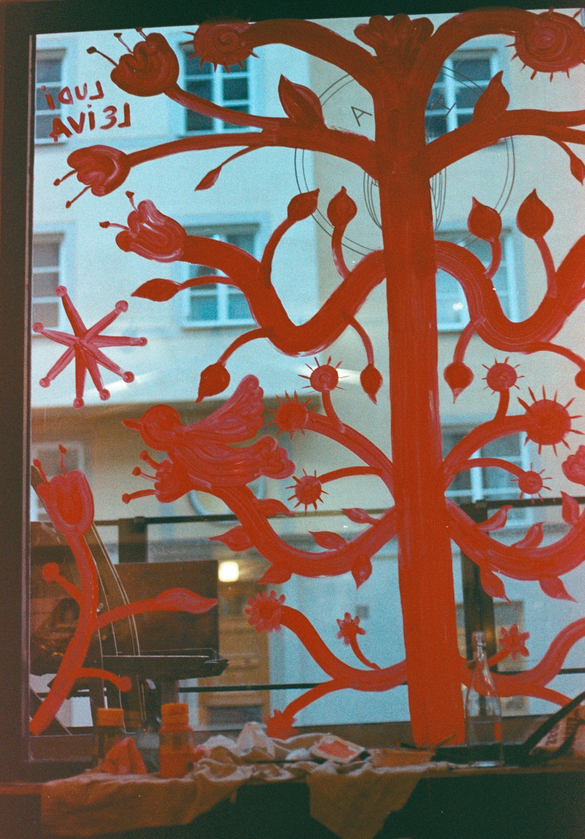 Ludi has also expanded into murals and window paintings, expanding her expressive work further into the physical realm.