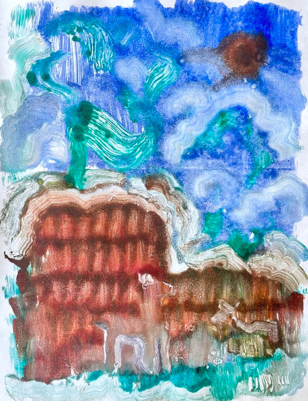 Gouache and oil pastel on hand-torn paper