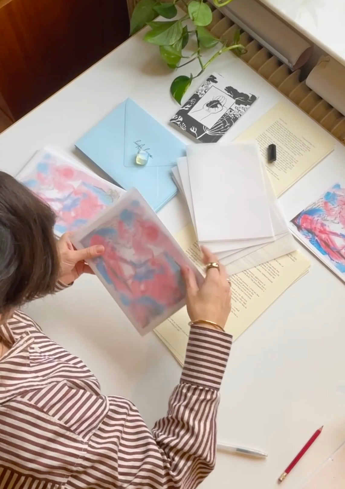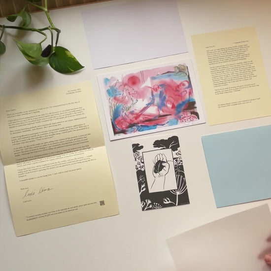 This project's goal is to create a quiet offline ritual for connection, creativity, and care through monthly art deliveries via snail mail. I hope being a member of Print Post will feel like receiving a care package from a friend, and bring you a pocket of calm and inspiration you can count on every single month.